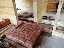 すべての表面は、いかなる木材でも張られてはならない。ただし、理想的には工業用チャンバーで慎重に乾燥させた木材に限る。調理器の周りには、不燃性が確認されているレンガやタイルのみを置くようにしてください。タイル張りの床は冷たいのですが、取り外し可能な木製の格子を置くことで改善されます。棚板は厚い板を画鋲や釘で打ち付けたものです。釘打ちやネジ止めはしないでください。