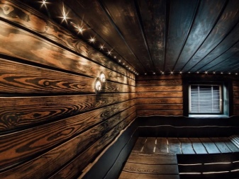 多くの人の意見では、ボードを使ったほうがいいということです。 スチームルームはこのバージョンでシックな印象になります。 しかし、木は時間が経つと黒ずんできます。これは、内装のクラッドに特別な処理を施すことで防げますが、その処理方法の選択が非常に重要です。具体的な解決策を説明する前に、さまざまな種類の木材の特性を理解することが重要です。