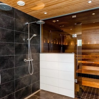 スチームルームの条件は、どのサウナヒーターを設置し、どのように機能させるかだけに依存するわけではありません。また、内装の仕上がり具合も重要です。 外見だけでなく、実用的な装飾にも気を配る必要があります。 スチームルームの壁は、ほとんどの場合、木でできています。それ以外の素材はほとんど使われていない。