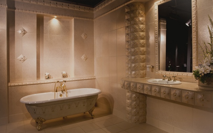 広いバスルームでは、よりイマジネーションの幅が広がります。ここでは、モザイクの壁を作るなど、いくつかのタイルを使用することができます。そんなバスルームにポンペイ・コレクションはとてもエレガントに映えるでしょう。背の高いタイルは視覚的に壁を長くし、ホワイトカラーは光を加え、繊細なゴールドのデザインはインテリアに高級感とアンティークボヘミアンを加えます。