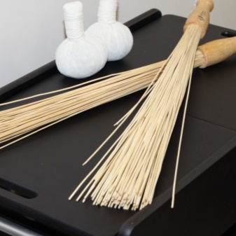東洋では古くからこのような装置が治療に使われてきました。 ほうきの主な用途はマッサージです。竹はロシア人には珍しい硬さがあり、同じ樫の木の箒でマッサージするのとは根本的に違うテクニックを使うことを提案しています。マッサージ師の動きは、ゆっくり、繊細に、非常に正確に行う必要があります。