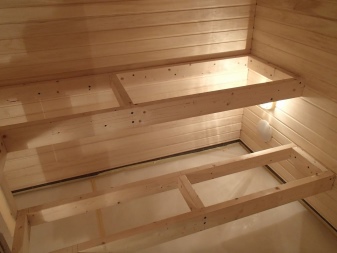Norėdami pasirinkti tinkamą pirties dizainą, turite atsižvelgti į tai, ar yra lentynų. Jos turi būti kuo patogesnės ir funkcionalesnės. Paklotai turi būti pagaminti iš medienos. Pageidautinos pakopinės konstrukcijos, kuriose lengva pasirinkti tinkamiausias šilumines sąlygas. Suolai naudojami ir mažuose, ir dideliuose kambariuose, lovos - rečiau.