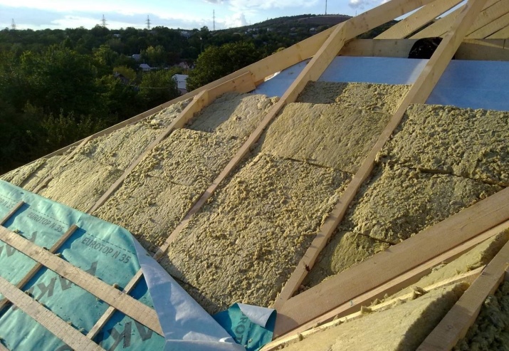 - Tada hidroizoliacinė plėvelė klojama ant gegnių taip, kad tarp jų šiek tiek prasilenktų. Ant plėvelės dedamos lentų lentjuostės, išdėstytos 40-50 cm atstumais. Ant jo dedama stogo danga ir tvirtinama savisriegiais.