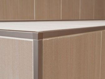 - Keraminiai kampai gerai papildo interjerą. Ryškiausios spalvos yra sidabro arba aukso spalvos. Galima rinktis iš daugybės profilių, kurie gali būti visiškai atkartojami plytelių dizaino arba turėti patrauklų savo raštą.