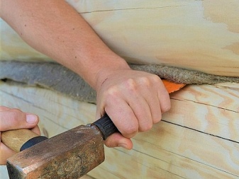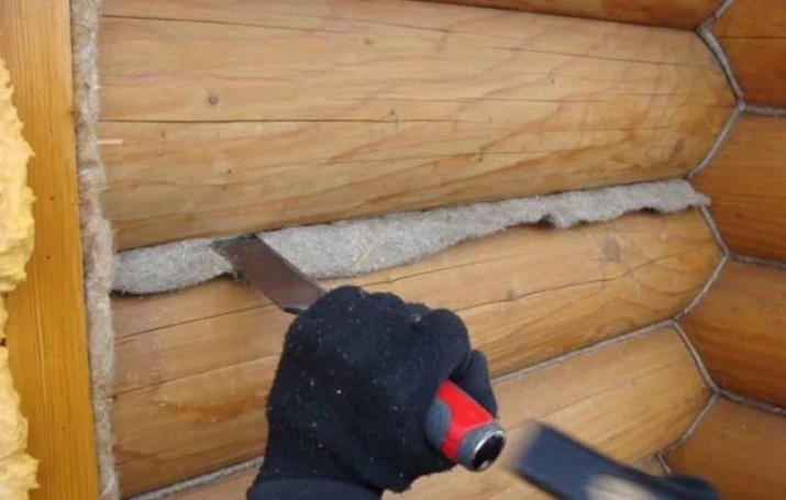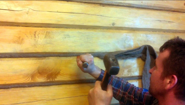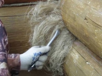 Materiālu ietin biezā saišķī un, ja nepieciešams, savij bumbiņā. Iegūtā šķiedra būs jānogādā līdz spraugai un jāievieto ar palīginstrumentu palīdzību. Izmantojot blīvējumu, nav nepieciešams ieskrūvēt izolāciju. Vienkārši pietiks to iebīdīt spraugā starp baļķiem un pēc tam galu galā iestumt, piemēram, ar āmuru. Jauna šķiedra tiek pievienota, līdz tā vairs neder.