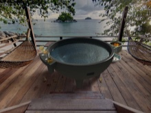 Aangezien de saunakachel wordt opgewarmd voordat een persoon in het water dompelt, worden de treden en het platform met de saunakachel mee opgewarmd. Dit zorgt voor het meest comfortabele temperatuurregime.