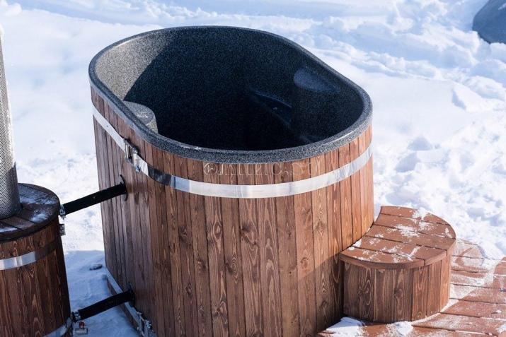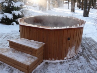 Als u zich wilt onderscheiden door originaliteit, is het raadzaam een normaal plastic lettertype te bestellen met neonverlichting erin of ernaast. Dit verhoogt de stemming in de winter of 's nachts. Zo'n structuur is omgeven door hout. Het is ook aan te bevelen het gebied eromheen met hout in te richten. Een verwarmd doopvont wordt een serieuze concurrent voor het klassieke bad. Het is een veel voordeliger en winstgevender oplossing, die u niet alleen in staat stelt uw tijd aangenaam door te brengen, maar ook om uw immuniteit te versterken.