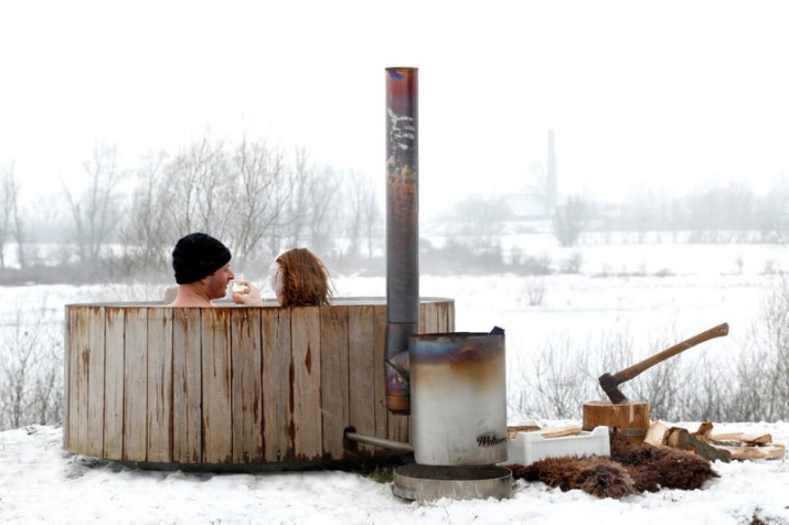 Artsen bevelen het aan als remedie tegen stress en als voorzorgsmaatregel tegen virale ziekten. Zelfs als het hoofd hoger is dan de stoom die zich rond de constructie vormt, is het risico op bevriezing bij temperaturen onder het vriespunt minimaal.