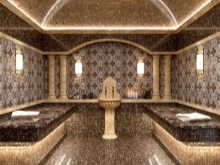 - Het stoombad is een Turkse hammam met een mild microklimaat. Het gaat om een relatief lage temperatuur van 40-45ºC en een luchtvochtigheid van bijna 100%. Openbare hammams bieden veel verschillende procedures aan.