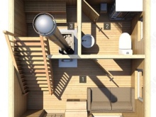 - Bij het ontwerpen van een sauna moet rekening worden gehouden met de oppervlakte, de configuratie en de grootte van het terrein - het is goed als de structuur niet alleen binnen maar ook buiten mooi zal zijn, op de meest gunstige plaats voor de sauna.
