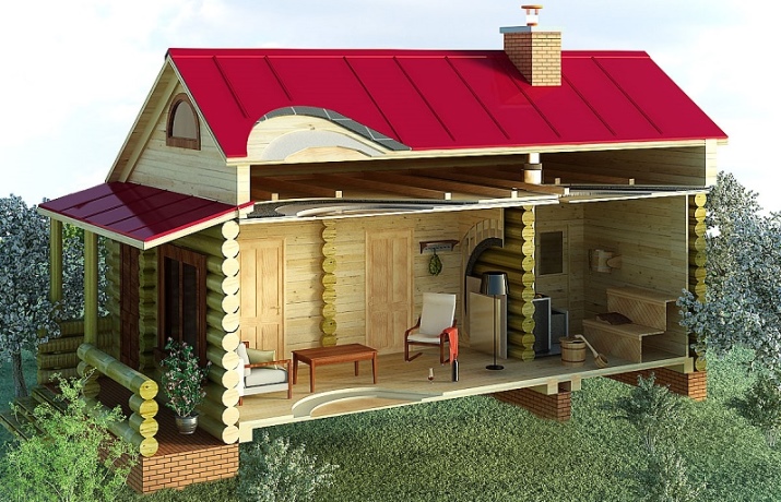 Bovendien kan, als de financiën het toelaten, de zolderverdieping worden verhoogd tot zolderhoogte, waar een logeerkamer kan worden ingericht. De grootte van de baden wordt door niemand beperkt - van mini-bouwsels, tot grote gebouwen, tot complete complexen met een zwembad en een tweede licht.