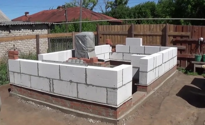 - Oprichten van muren. Deze fase is afhankelijk van de bouwmaterialen: als u bakstenen, blokken of straatklinkers gebruikt, wordt de fundering met het bouwniveau genivelleerd en wordt dakbedekking dubbel gestapeld op de cement-zandmortel. De stenen worden vanuit de hoeken gelegd.