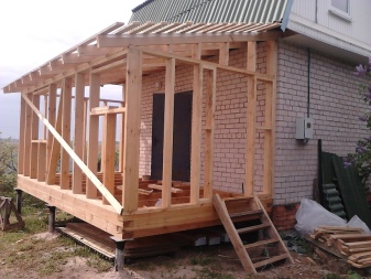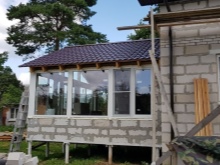 Voor die Wie heeft een beperkt budget, is er een goede optie frame veranda. Bij deze methode worden geprefabriceerde panelen met ramen en deuropeningen snel in elkaar gezet. De blokken zijn gemaakt van op maat gemaakt hout en planken, omdat ze zullen samenvallen met de gestorte fundering en de aangrenzende saunawand. De afgewerkte oppervlakken kunnen worden afgewerkt.