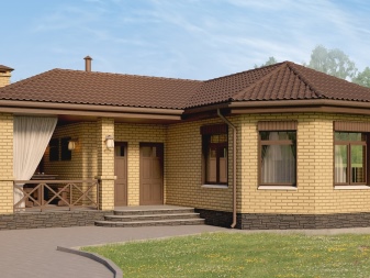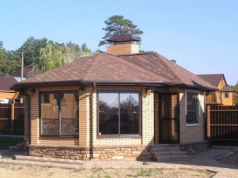 Baksteen. Duurzaam, sterk en mooi materiaal dat niet afgewerkt hoeft te worden. Het past goed bij een badhuis van blokken, bakstenen of steen. Het wordt gebruikt voor winteruitbreidingen, maar voert soms zuilen en lage muren uit voor zomermogelijkheden.