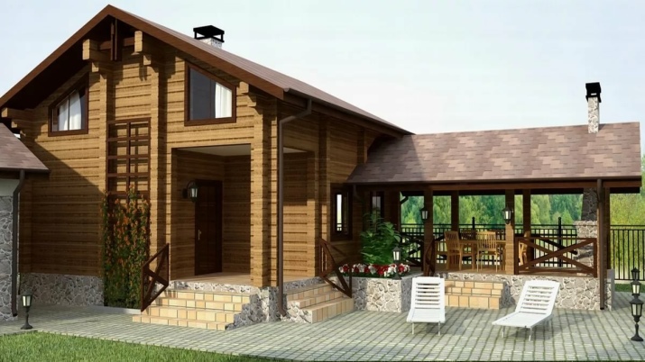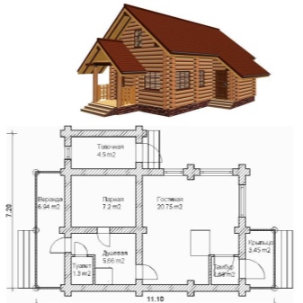 Als de ruimte beperkt is, kan een sauna worden gebouwd in combinatie met een gastenverblijf en een veranda. De eerste verdieping wordt gewoonlijk ingenomen door een slaapkamer en een woonkamer.