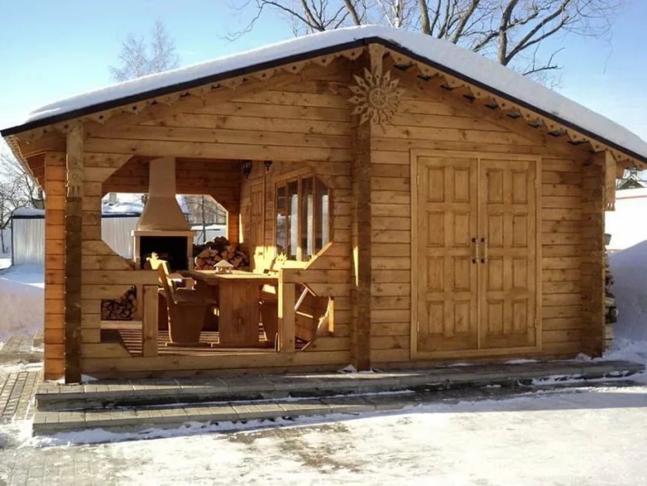 - een kleine sauna met een veranda onder hetzelfde dak, een ingerichte keuken voor zomerse bijeenkomsten, maar ook voor het bereiden van vlees boven een levend vuur in de winter;