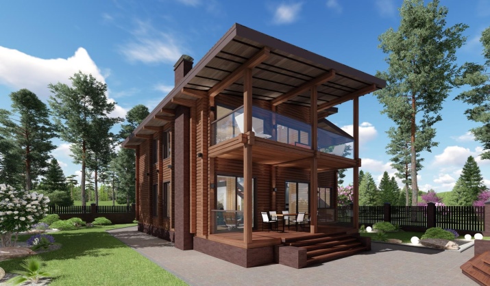 De doeltreffendheid van de buitenkant van een gebouw is niet afhankelijk van de schaal ervan, zoals blijkt uit voorbeelden van de beste ontwerpen: De open veranda is prachtig geïntegreerd in het omringende landschap.