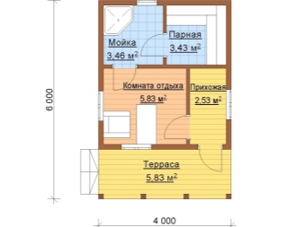 Można zmniejszyć wielkość przedpokoju, zwiększając tym samym powierzchnię do mycia, lub zrobić dużą łaźnię parową, pozostawiając miejsce jedynie na kabinę prysznicową. W samym budynku można zaprojektować werandę, taras. Może być z poddaszem lub dwukondygnacyjny. Projekt 4x6 może być oryginalny lub standardowy - wszystko zależy od preferencji i względów finansowych. O tym, jak wykorzystać metr wewnętrzny, każdy klient decyduje sam.