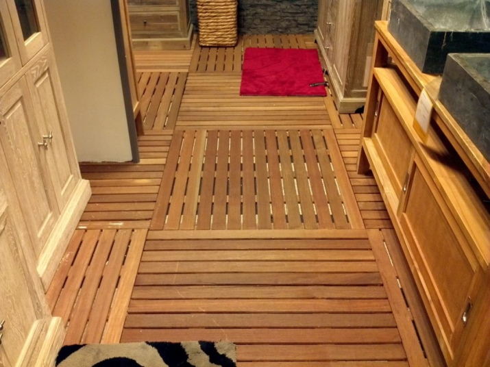 W rosyjskich łaźniach tradycyjnie jako podłogę stosuje się drewno. Główną zaletą tego materiału jest jego przyjazność dla środowiska i użyteczne właściwości. Oczywiście materiał ten nie jest tak trwały jak beton; po 10 latach systematycznego użytkowania niektóre elementy drewniane będą wymagały odnowienia. Niemniej jednak wymiana uszkodzonych płyt nie jest trudna, a ostateczne koszty są i tak znacznie niższe niż w przypadku posadzek betonowych.