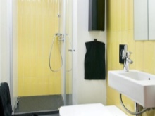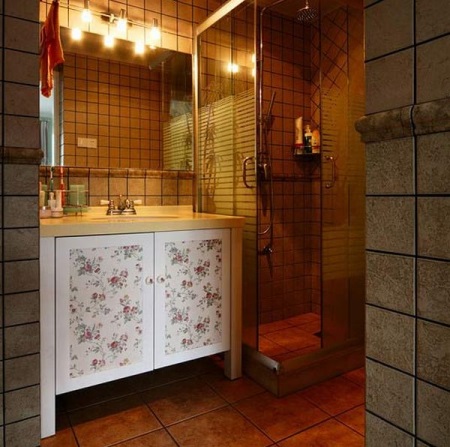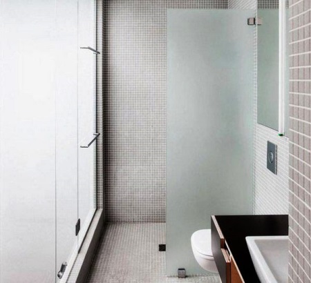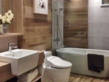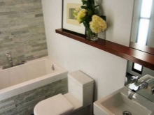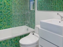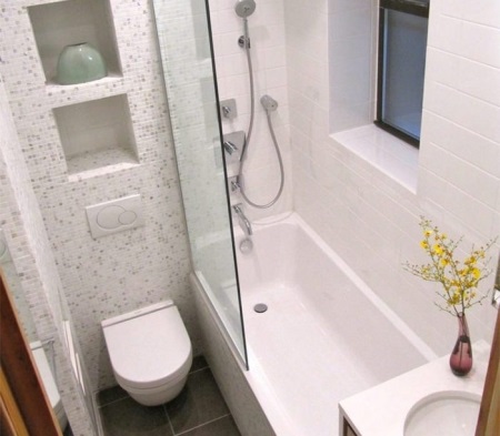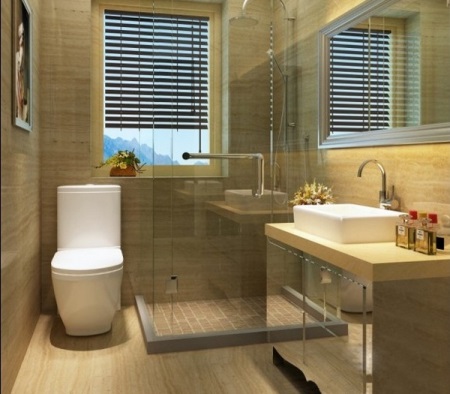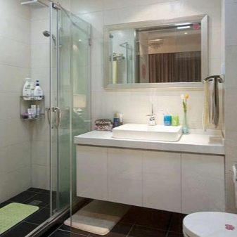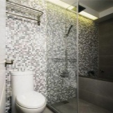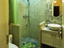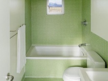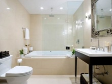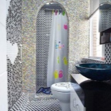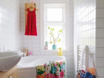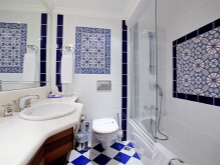 Jasne impregnaty mogą pomóc ożywić jasne wnętrze łazienki, a płytki mogą być nie tylko jednokolorowe, ale także z wzorem. Najlepiej jest użyć takiego materiału wykończeniowego w formie obramowania, kilku pionowych pasków lub nawet zaznaczyć kontrastujące elementy w chaotycznym porządku.