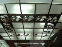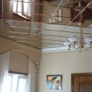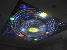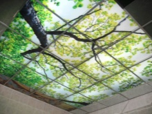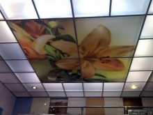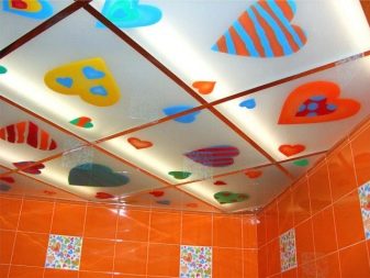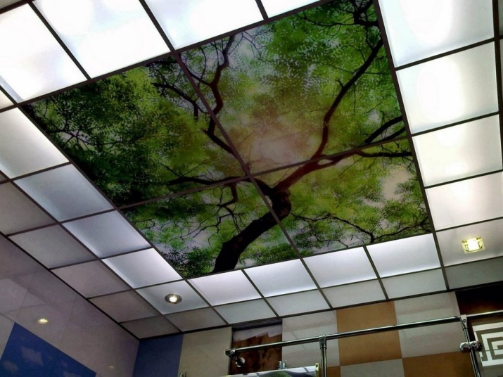 Jedną z najpiękniejszych i najbardziej stylowych opcji jest sufit z fotodrukiem. Płytki można układać tak, aby imitowały na przykład rozgwieżdżone niebo, tęczę lub chmury. W centralnej części sufitu można umieścić mozaikę z takich płyt, a wzdłuż krawędzi zwykłą płytę sufitową. W rezultacie powstało bardzo ciekawe i nietypowe rozwiązanie konstrukcyjne.