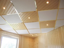 - Sklejka laminowana. Doskonała opcja do pomieszczeń mokrych. Zalety materiału: lekkość, praktyczność, trwałość. Taki materiał jest łatwy do pomalowania, a sufit można odnawiać tak często, jak się chce. Materiał ten jest przyjazny dla środowiska i bezpieczny dla otoczenia.