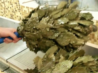 Bardzo szybki sposób na zmiękczenie suchej miotły, która wymaga szczególnej ostrożności. Najpierw zanurza się ją na 1-2 minuty w zimnej wodzie, a następnie, zakładając na dłoń rękawicę, wkłada się ją na 2-3 minuty do pieca sauny, delikatnie obracając z każdej strony. Krople spływające po mokrych gałązkach zamienią się w parę i stworzą efekt parowania.