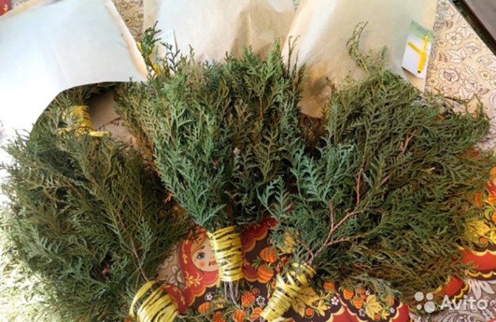 - Thuja. Miotły z drzew iglastych nigdy nie przestaną być popularne. Na przykład produkty wykonane z drewna tujowego mają doskonałe właściwości.