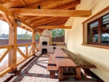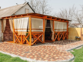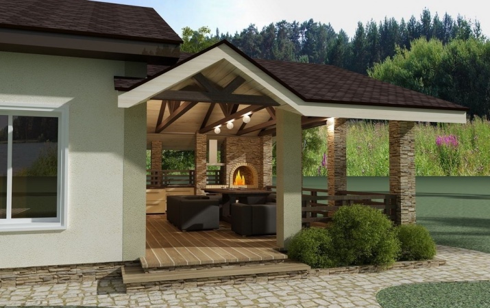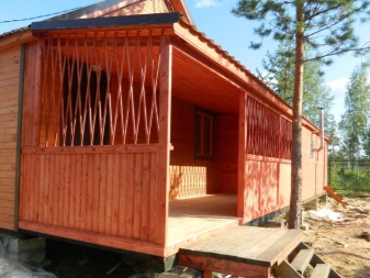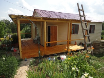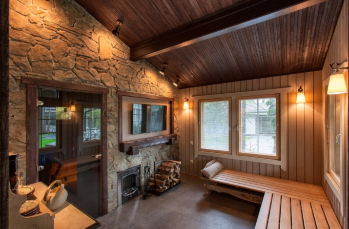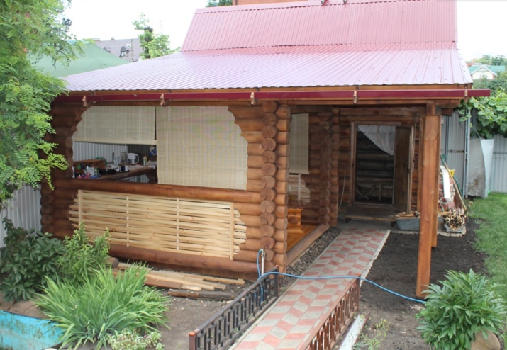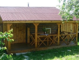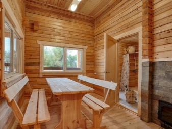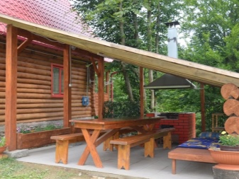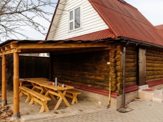 Uma dependência é fácil de integrar numa sauna, mesmo sem ajuda profissional. Não é necessário desmontar paredes, alterar o telhado ou unir as fundações. É uma estrutura separada, mas está ligada estreitamente à parede da sauna na área da porta de entrada. O gazebo não tem de seguir a forma da estrutura permanente e é feito do mesmo material; pode ser de qualquer forma. Por vezes, é construído num fogão, instala um churrasco, até traz tubos de água para garantir um lugar para cozinhar água.
