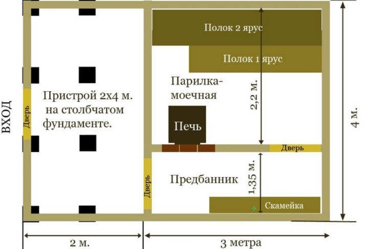 A extensão para a sauna resolve diferentes tarefas. A sua finalidade depende da funcionalidade do edifício principal. Se o banho é a versão mais simples - um banho a vapor e um pré-banho, necessitará pelo menos de um balneário. Por vezes o espaço é tão pequeno que mal é suficientemente grande para duas pessoas, não há lugar para mudar de roupa ou para pôr lenha. O espaço deve ser aumentado para satisfazer os requisitos mínimos durante o período balnear.