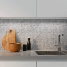 O elemento de decoração do padrão de espinha de peixe é muito compatível com o fundo do produto. Disponível em 40x40 cm, este azulejo pode ser facilmente instalado.