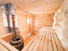 În cazul în care sauna este făcută din lemn de plop și tei, nu se pot folosi materiale de finisare, deoarece aceste specii sunt rezistente la căldură. În cazul în care cabana din lemn a fost construită din conifere, care sunt extrem de afectate de căldură și pot deveni foarte fierbinți, finisajul trebuie ales cu grijă.