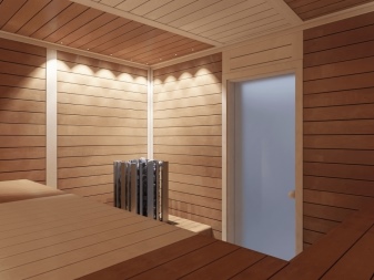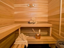 Camera principală - sauna.. După cum am spus mai devreme, temperatura și umiditatea sunt constant ridicate și există o mulțime de aburi. Această încăpere necesită materiale extrem de pretențioase, deoarece trebuie să reziste la condiții extreme și să dureze mai mult.
