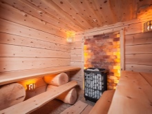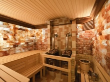Alte finisaje pentru camera de aburi sunt Cărămidă și piatră. De asemenea, puteți folosi sarea de Himalaya, care poate crea un design incredibil de frumos și estetic și poate satura aerul cu substanțe benefice, având un efect pozitiv asupra corpului uman. Astfel de materiale sunt destul de scumpe, dar sunt destul de accesibile. Inserțiile mici de piatră și sare pot fi plasate pe pereți, unele colțuri căptușite, părți de pereți sau diverse forme geometrice, adăugând o anumită savoare la interiorul camerei de aburi.