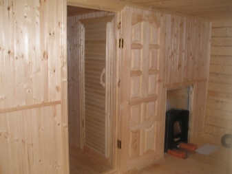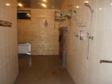 Faptul că sala de duș nu este la fel de fierbinte ca și camera de aburi nu înseamnă că în ea pot fi folosite toate tipurile de materiale de placare. Nivelul de umiditate acolo este foarte ridicat, așa că, dacă folosiți, de exemplu, placarea pereților, trebuie să cumpărați rezistent la umiditate tipuri. Învelișul poate fi realizat din lambriuri din lemn de esență moale.Ca în camera de aburi.
