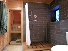 Cabinele de duș pot fi din gresie sau din vinil. Se pot folosi elemente care sunt țesute din bambus și viță de vie. Acestea vor face ca încăperea să arate mai elegantă și mai confortabilă și vor emite un parfum interesant atunci când sunt încălzite.