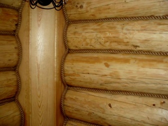 Chiar dacă sauna este construită din molid sau pin, puteți evita cu totul nevoia de finisare.. În cazul în care casa din bușteni este construită din bușteni rotunjiți, folosind tehnica bucking, puteți decora interiorul casei cu o frânghie decorativă. frânghie. Acesta trebuie să fie plasat între bușteni. Sauna va fi construită în stil rustic, iar frânghia va servi ca izolație suplimentară. Costul unui astfel de decor nu este prea scump, mai ieftin decât un decor complet al camerei.
