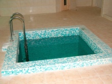 - Cel mai izbitor și atractiv finisaj pentru un bazin din beton este reprezentat de plăcile de mozaic. Dacă doriți să vă decorați sauna sau grădina (în cazul unui rezervor în aer liber) cu un rezervor elegant și cu aspect scump, este recomandabil să folosiți mozaicuri. Cu toate acestea, un astfel de material de finisare de înaltă calitate poate să nu aibă cea mai democratică etichetă de preț.