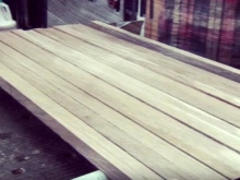 - În funcție de configurația băncii, marginile plăcilor vor trebui să fie tăiate la 45 de grade sau rotunjite cu ajutorul unui fierăstrău electric. După terminarea lucrărilor de prelucrare a marginilor de construcție, scândurile sunt îmbinate cu lamele în perechi, iar apoi sunt șlefuite bine.