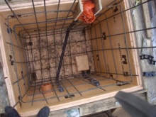 - Cofrajul ar trebui să fie așezat mai sus decât plasa de armare. Pereții cofrajului sunt umpluți cu beton gata preparat 1 dată, după care se toarnă fundul.