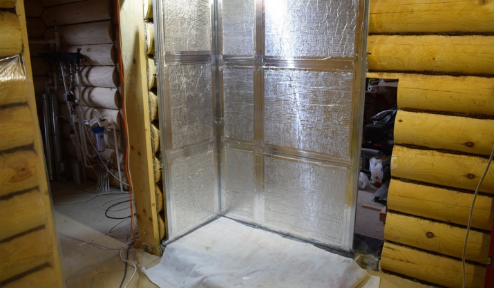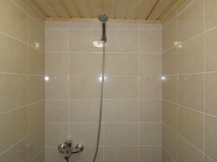 Este important de reținut faptul că toate părțile deschiderii expuse la spațiul de duș trebuie acoperite cu panouri rabatate. În etapa finală, singurul lucru care mai rămâne de făcut este de a panota peretele cu zăbrele. Pentru a face acest lucru, limba fiecărei piese succesive este introdusă în canelura piesei precedente și fixată cu cuie fără cuie.