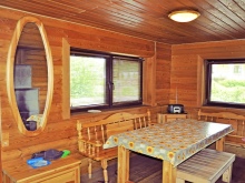 - Stilul cabanei, cu mobilier predominant rustic, care creează o atmosferă de cabană de vânătoare.