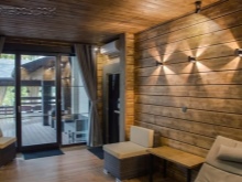Aparatul de iluminat trebuie să se potrivească cu stilul de design ales. Acesta trebuie să fie compatibil cu alte corpuri de iluminat instalate în saună. În cele mai multe cazuri, nu există o fereastră în anticameră, ceea ce reduce nivelul de lumină.