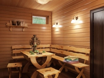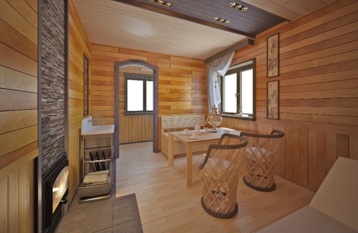 În ceea ce privește achiziționarea de televizoare, perne, bănci și mobilier tapițat, acestea sunt adecvate doar în băile mari. Același lucru este valabil și pentru utilizarea anticamerelor ca săli de biliard. Aceștia au nevoie de o cameră separată. În schimb, zonele de șemineu și barurile sunt o tehnică de design populară în saunele moderne.