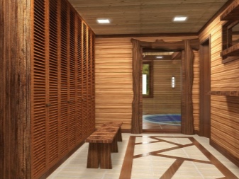 Unii oameni folosesc OSB pentru placare. Finisarea pereților anticameră cu panouri din plastic se face mai rar. În ciuda accesibilității, a varietății de culori și a rezistenței la umezeală, PVC-ul are o mulțime de dezavantaje. În condițiile de umiditate tipice pentru pre-băi, panourile se vor deforma și vor suferi deteriorări mecanice și, de asemenea, nu emană aroma unică de saună, așa cum se întâmplă cu placarea cu lemn natural. Placarea cu panouri pentru pereți și tavane este utilizată numai în cazul în care există constrângeri financiare. Mozaicurile și gresia, pe de altă parte, sunt alegeri bune pentru pereții din anticameră. Acestea pot fi folosite pentru a accentua spațiul în diferite zone funcționale ale camerei.
