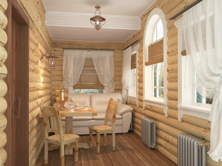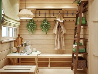 Cel mai simplu mod de a decora interiorul antecameră într-o casă de țară sau o baie privată este în stil rusesc, cu accent pe lemn. Puteți decora pereții cu mături de stejar și mesteacăn. Dacă există spațiu în anticameră, puteți amenaja o zonă de băut ceai.