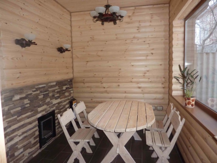 De exemplu, gresia poate fi utilizată pentru a evidenția zona de spălare (chiuvetă sau chiuvetă). Acesta poate fi folosit pentru a accentua un șemineu sau o zonă de luat masa. Lamele din lemn pot fi folosite pentru a decora pereții, dar pentru tavan alegeți fie un alt material, fie un lemn cu o textură diferită. Zona vestiarului din baia de vară poate fi accentuată cu ea.