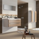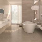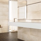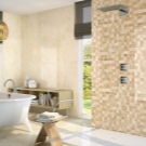 - Crema. Obklady sú v pokojných, krémovo ružových odtieňoch, ktoré vytvárajú atmosféru sviežosti, ľahkosti a nehy. Luxusné ružové púčiky, ktoré zdobia dekoračné prvky, dodávajú interiéru elegantný, dokončený vzhľad.