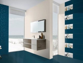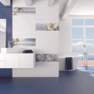 - Groove. Biela a modrá. Pravdepodobne neexistuje lepšia kombinácia pre kúpeľňu ako táto. Azúrová vlna a biela pena, modrá obloha a biely oblak. Kombinácia týchto farieb v spojení s dekoratívnymi obkladmi s exotickými kvetmi a palmami premení každý interiér na malý kúsok tropického raja.