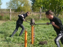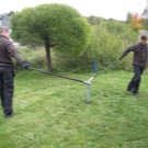 Najbolje bi bilo, če bi to storili v troje. Nekdo poskrbi, da je podpora strogo navpična. Druga dva upravljata jekleno ročico, medtem ko dodajata glineno malto, da se lažje vijači. Po končani namestitvi z raztegljivimi označevalnimi vrvicami odrežite konce v isti višini. Na vrhu so dodane plošče ali trakovi iz jekla.